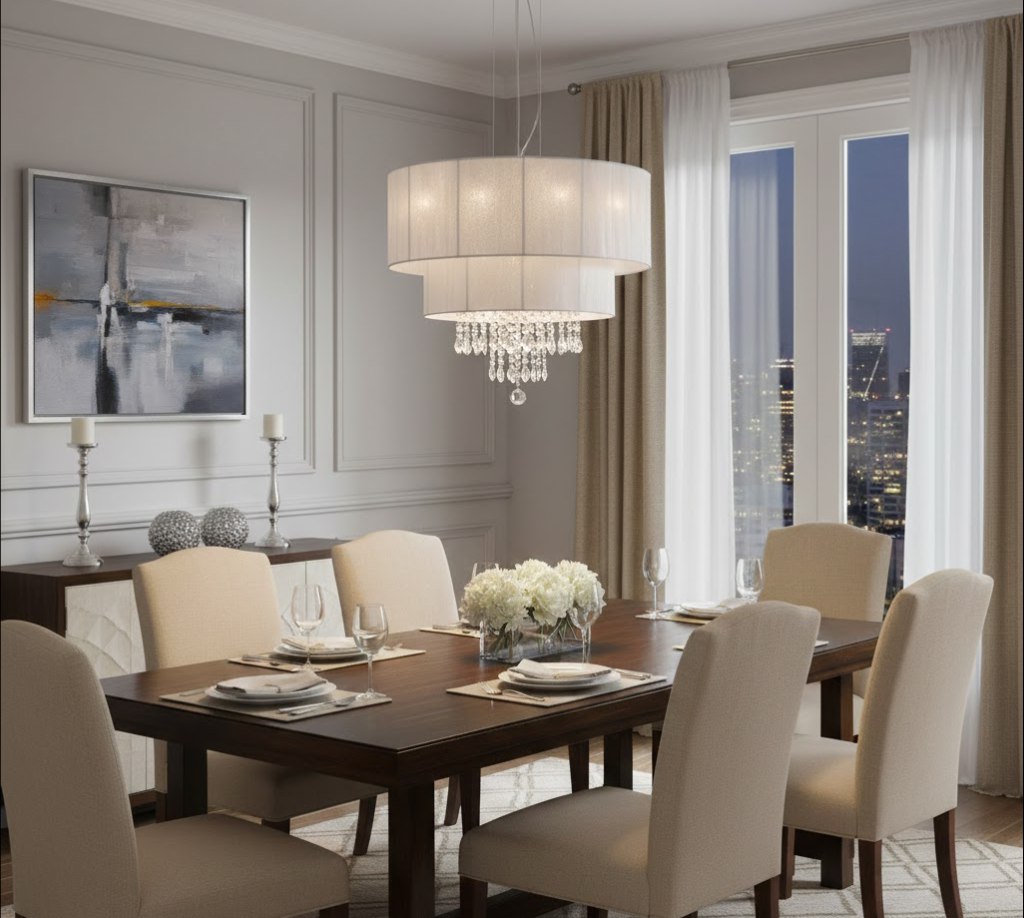 Мягкий свет – абажур эффективно приглушает яркость ламп, создавая уютную атмосферу.