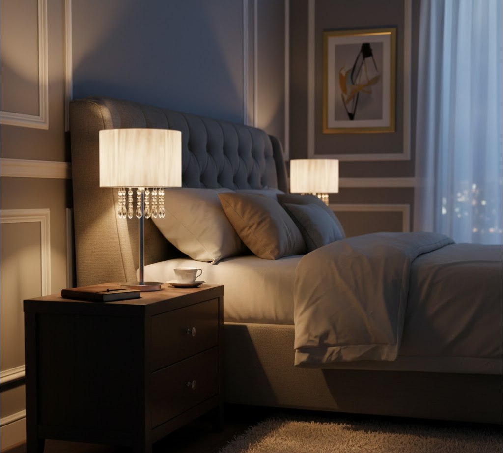 Стильный контраст – сочетание холодного блеска хрома и матовой белизны текстиля смотрится свежо и нарядно.