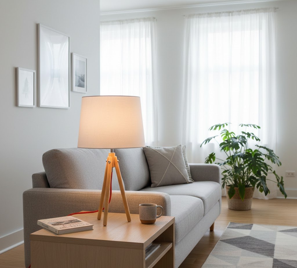 Комфортное освещение – белый тканевый абажур работает как отличный рассеиватель, создавая мягкий, небьющий в глаза свет, идеальный для чтения перед сном.