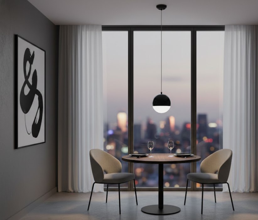 Внешняя сторона плафона окрашена в глубокий черный цвет (часто глянцевый), а внутренняя поверхность — в белый цвет. Такое решение не только создает стильный монохромный контраст, но и функционально оправдано: белое покрытие отлично отражает свет, делая его ярче и чище. Благодаря компактному диаметру 170 мм, этот одиночный подвес станет отличным выбором для точечного освещения барной стойки, прикроватной зоны или коридора.