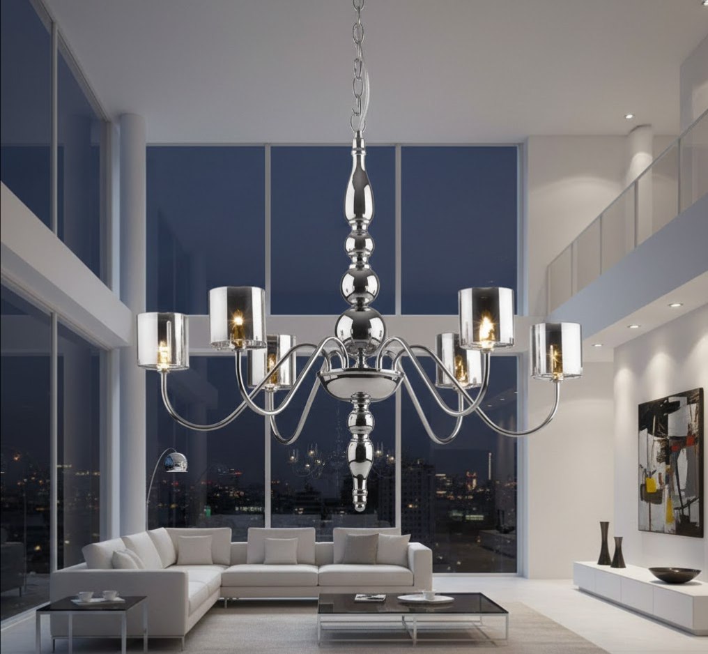 люстра Ideal Lux DUCA 004556, люстра хай-тек хром, стеклянная люстра современная, подвесной светильник хром, Ideal Lux Chrome, люстра 6 ламп, стильная люстра в гостиную, светильник металл стекло.
