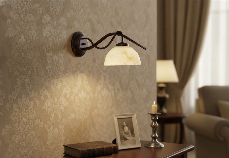 Плафон из качественного стекла мягко рассеивает свет, создавая комфортную атмосферу, а характерные для стиля изгибы основания добавляют динамики и роскоши. Это бра станет идеальным акцентом в гостиной, спальне или коридоре, подчеркивая утонченный вкус владельца.